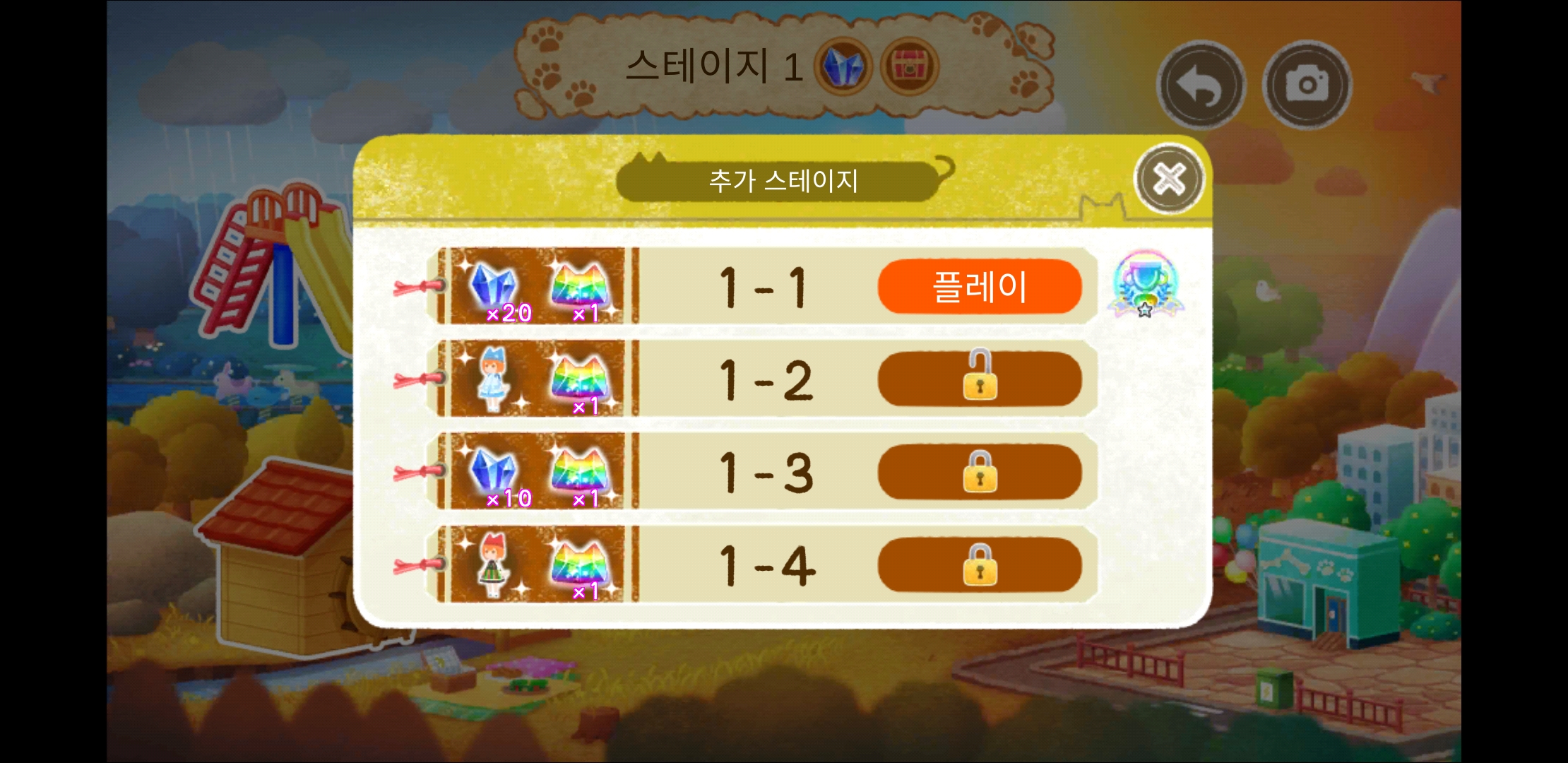 메인 스테이지를 깨게되면 해당 스테이지를 진입하면 추가 스테이지를 할 수 있고 해당 스테이지는 메인 스테이지와는 별개의 퍼즐이 있어요~~