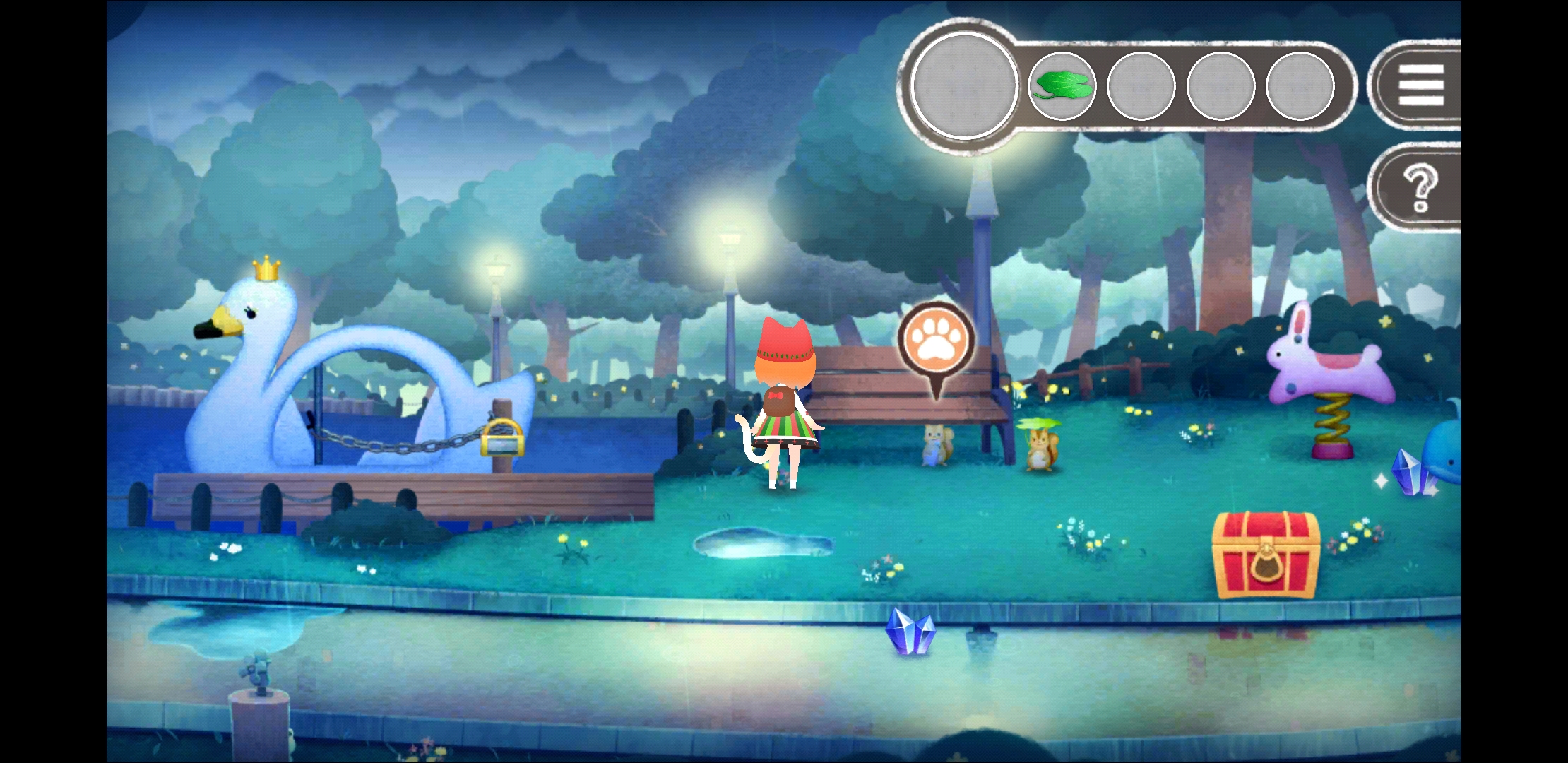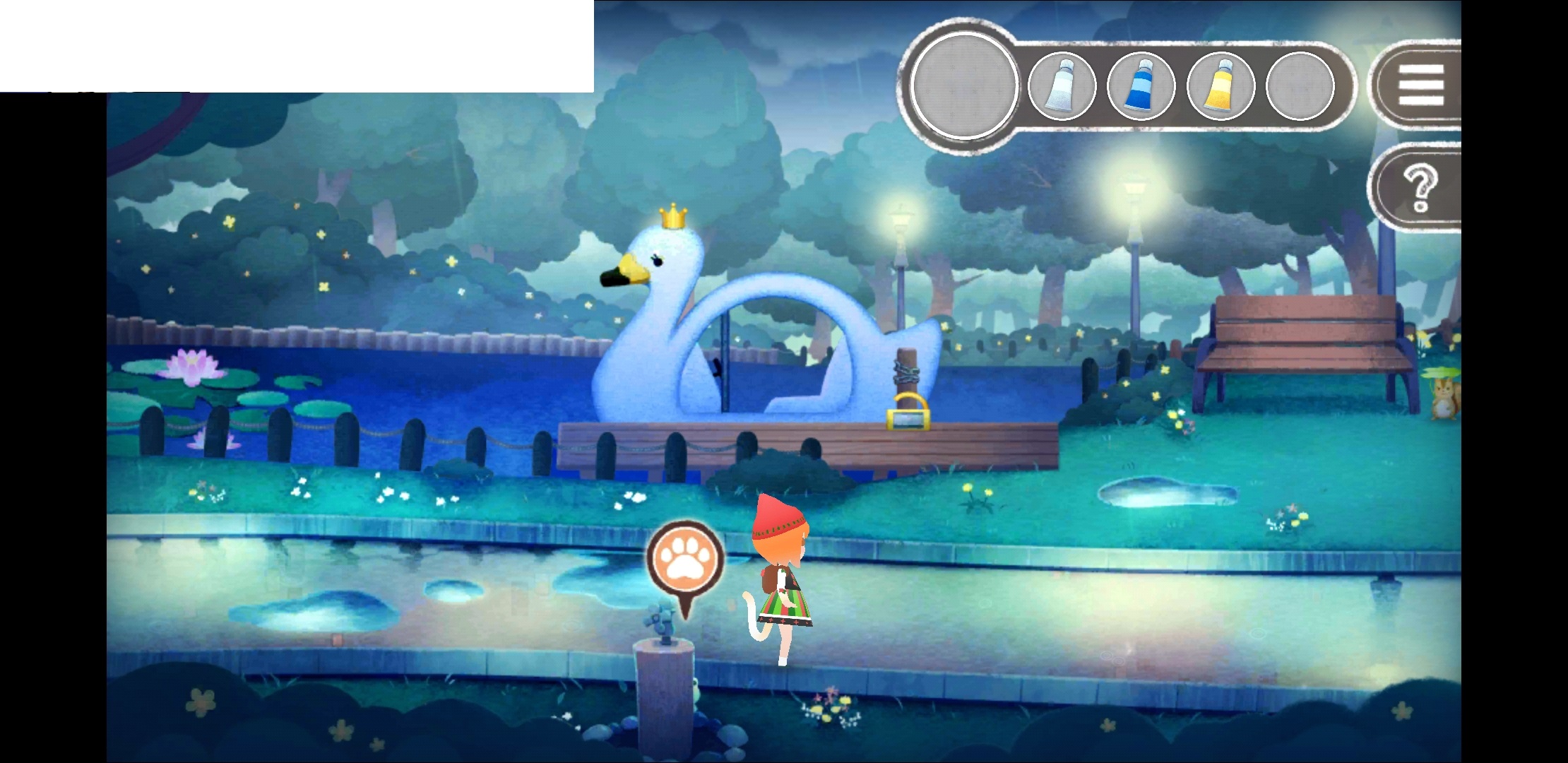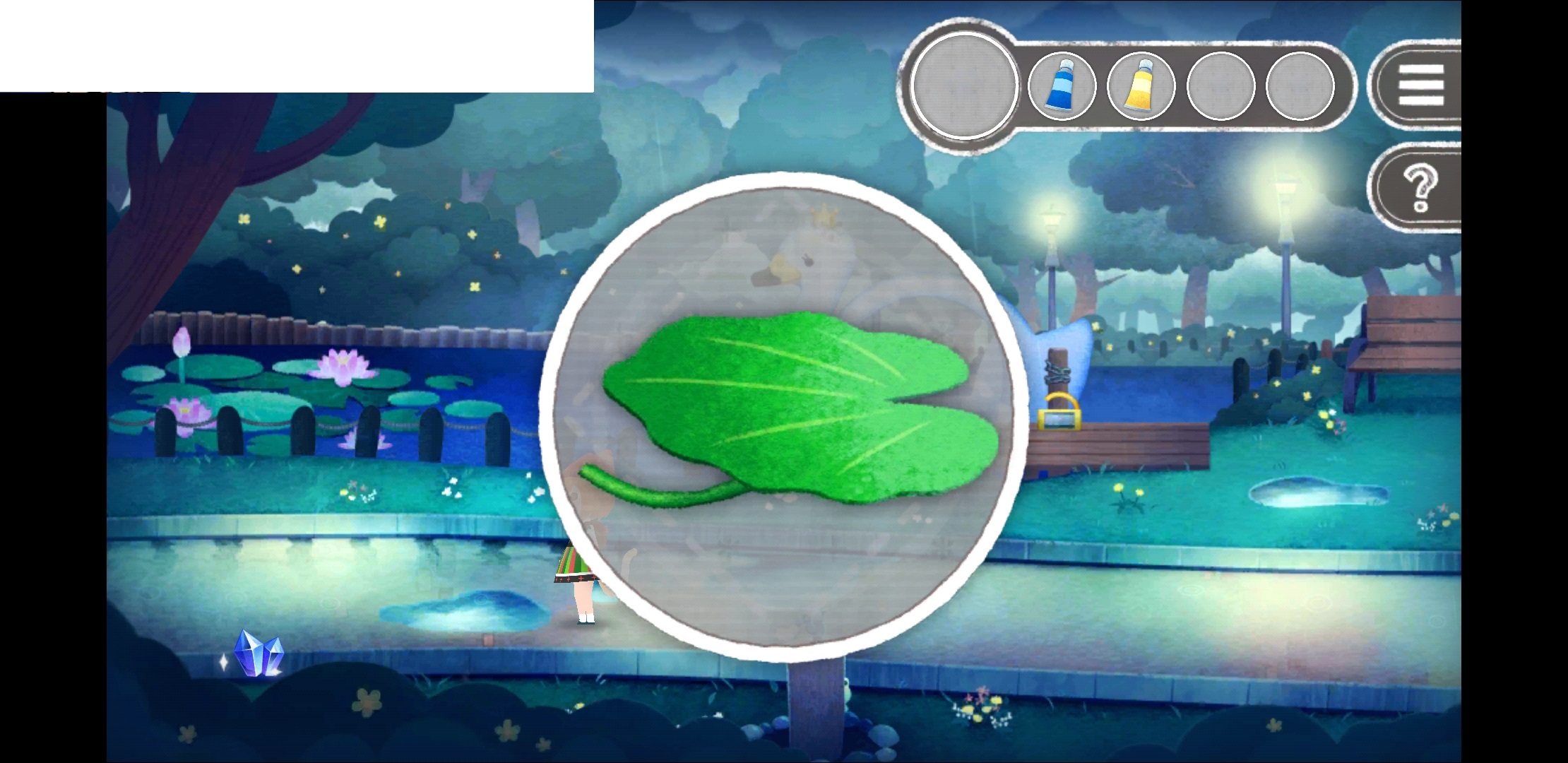세번째 물감은 왼쪽 끝 하단에 물에 떠있는 나뭇잎을 주워다가 다람쥐에게 가져다주면 물감을 주워요. -하양 물감 Get!!
