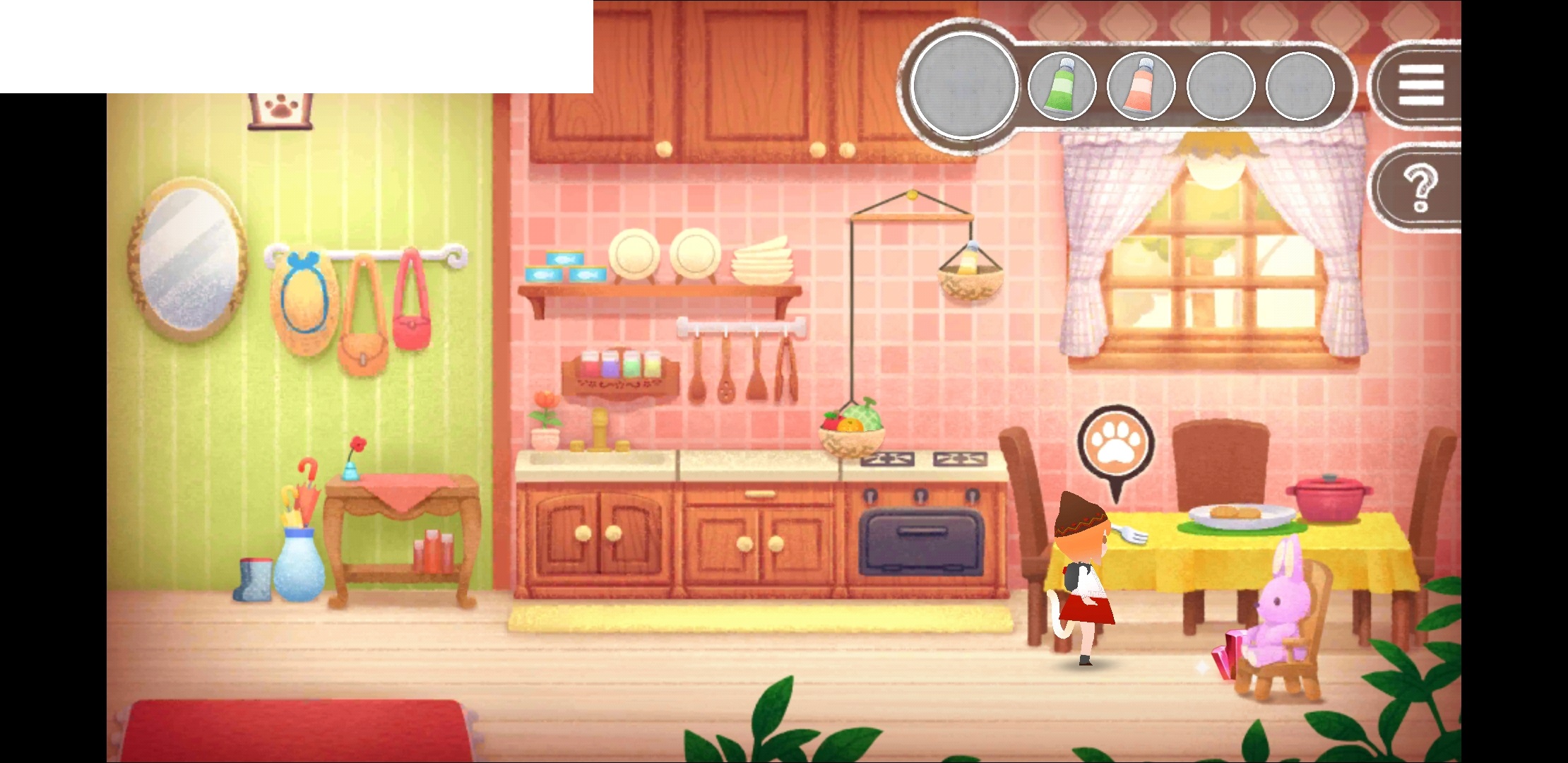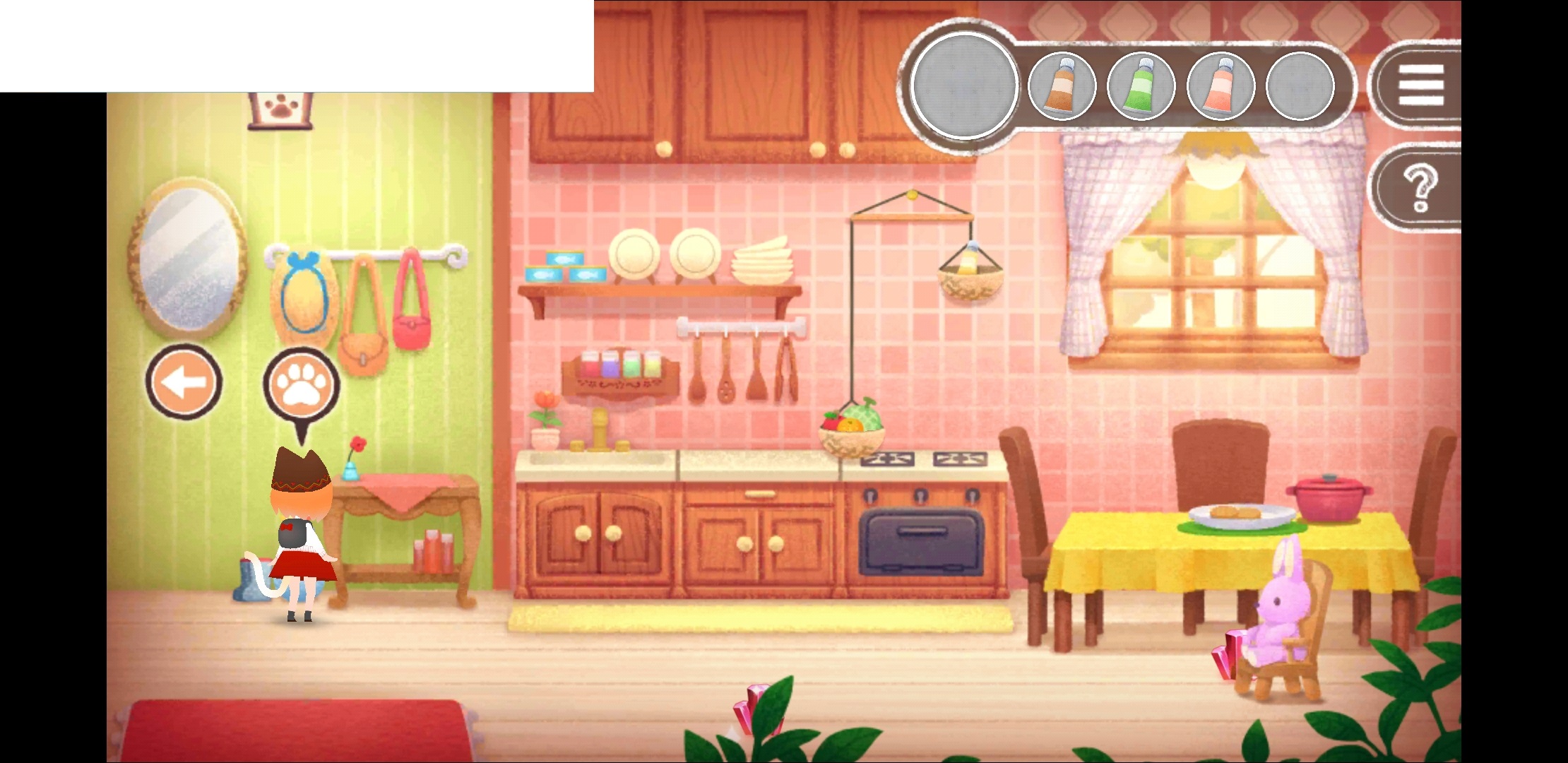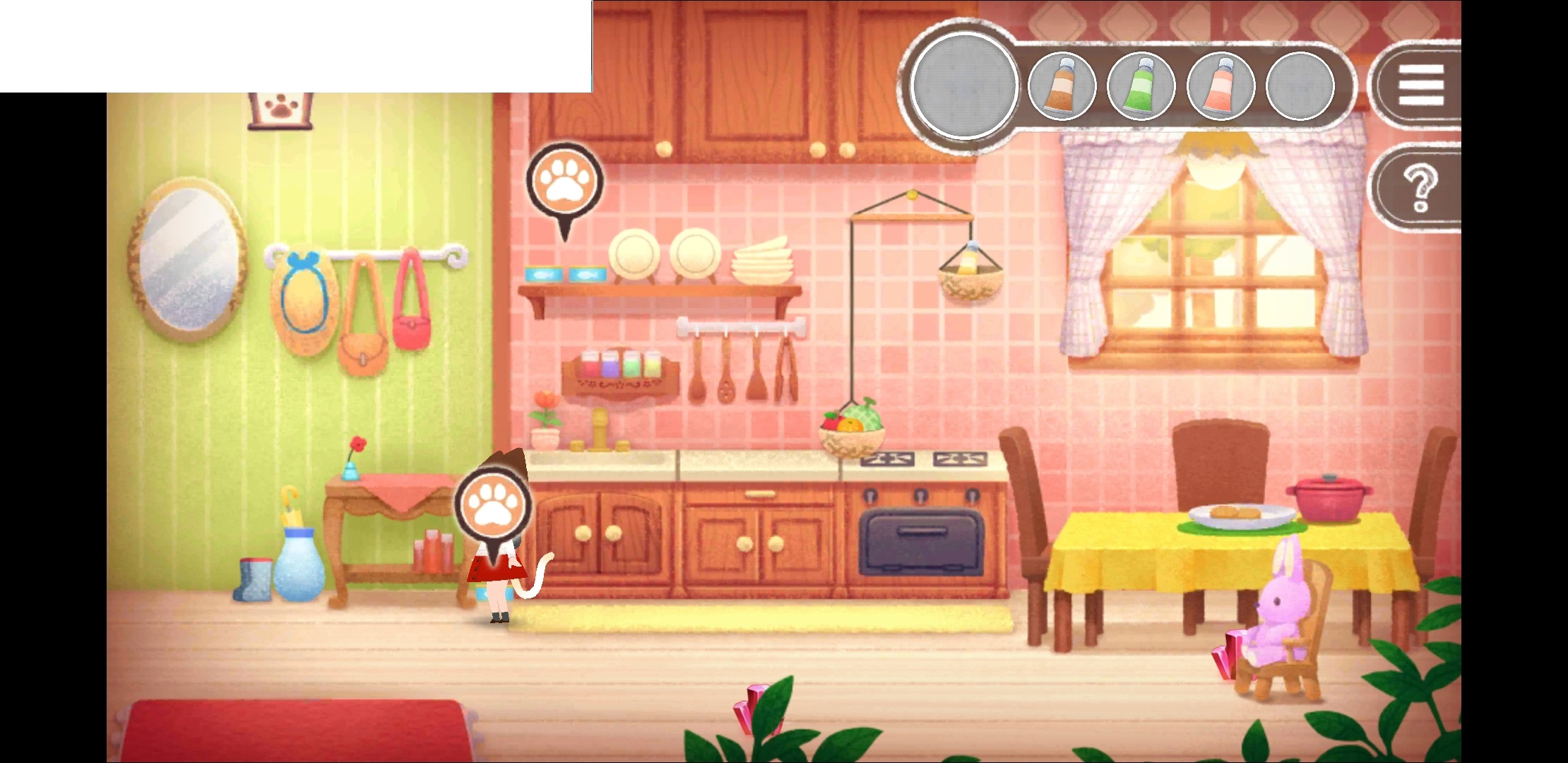 2층에 펭귄인형(왼쪽), 1층에 곰인형(정면), 식당에 토끼인형(왼쪽)을 찾아서 바라보는 방향을 외워요 그리고 1층 서랍에 동물 바라보는 방향을 입력하면 녹색 물감을 Get!!!