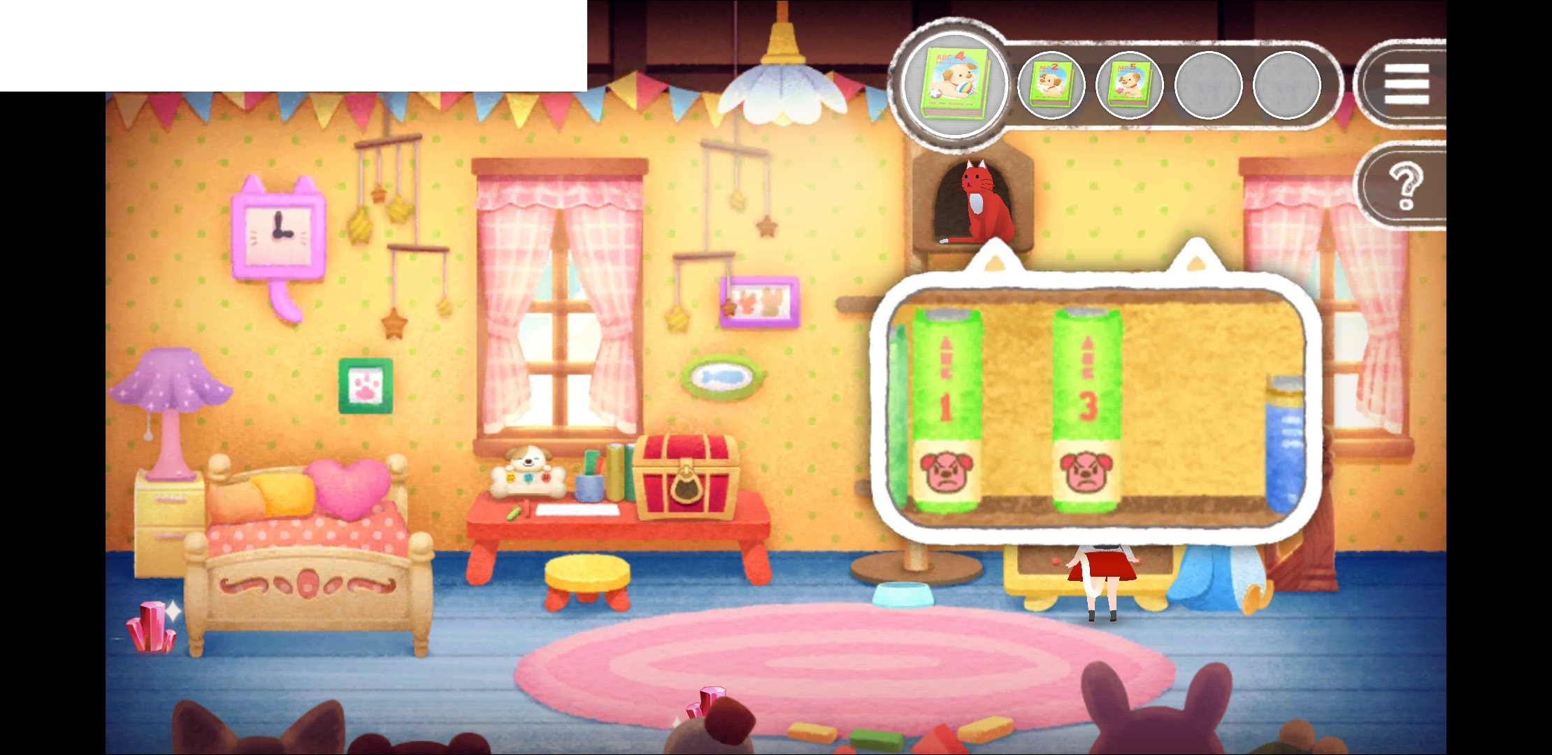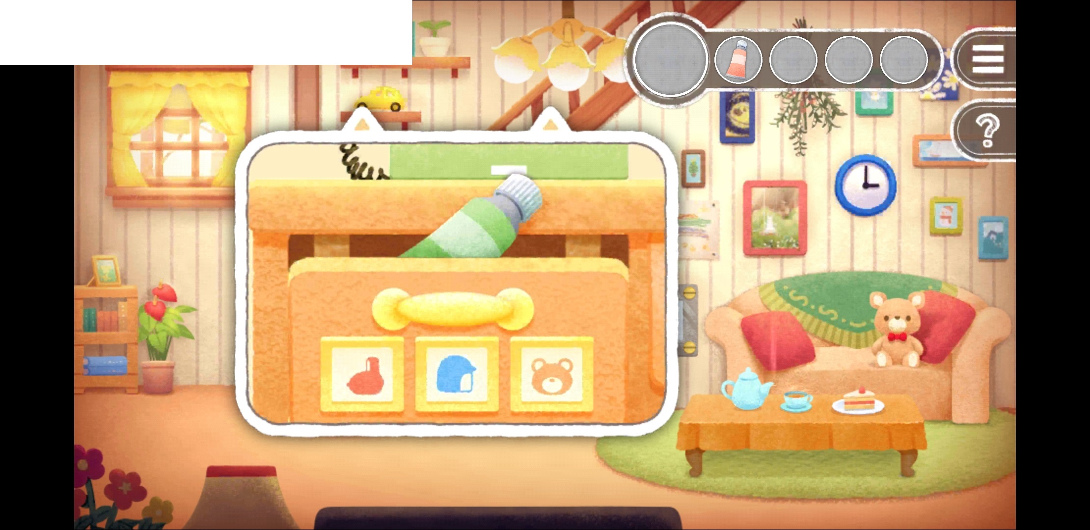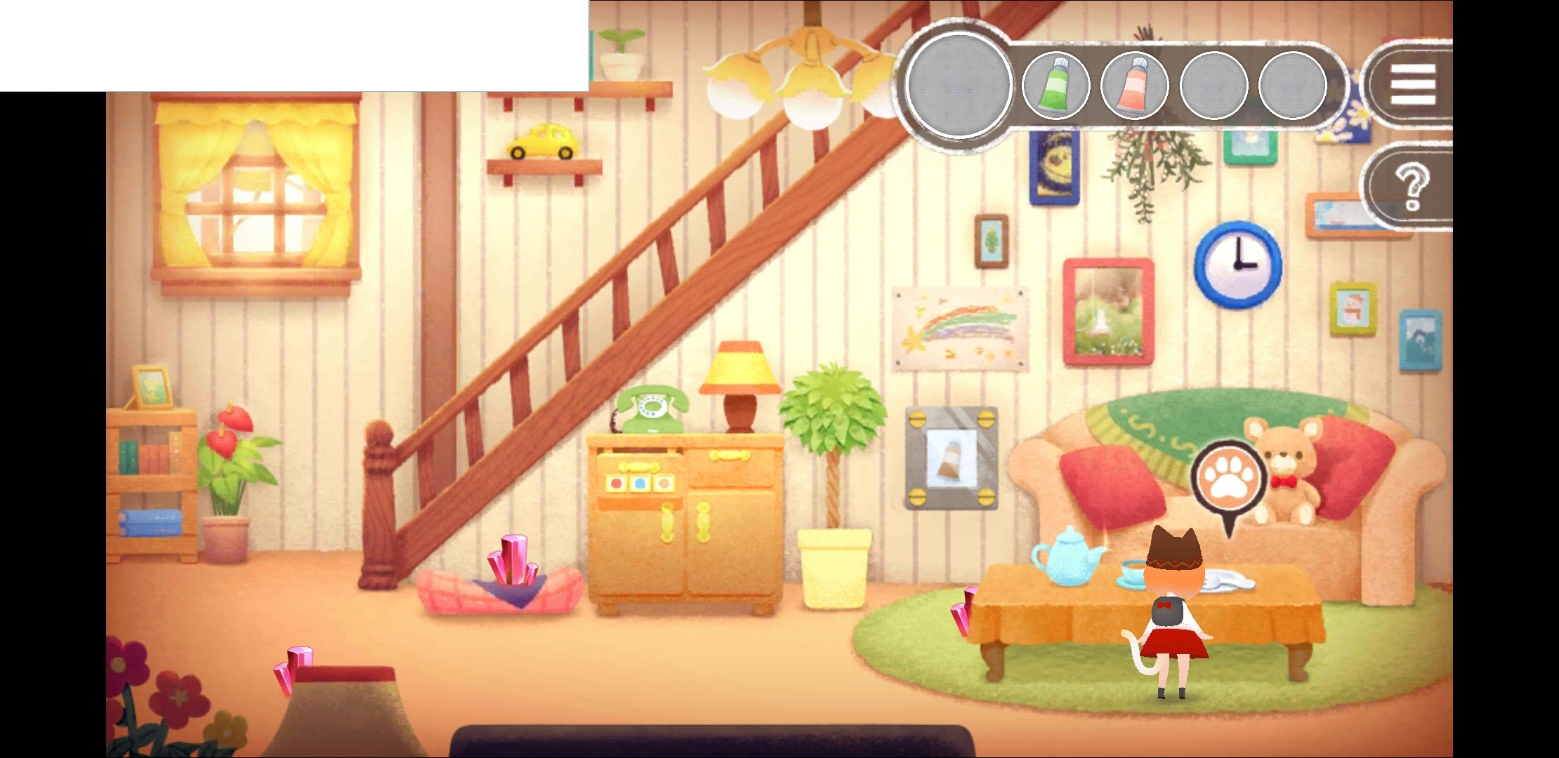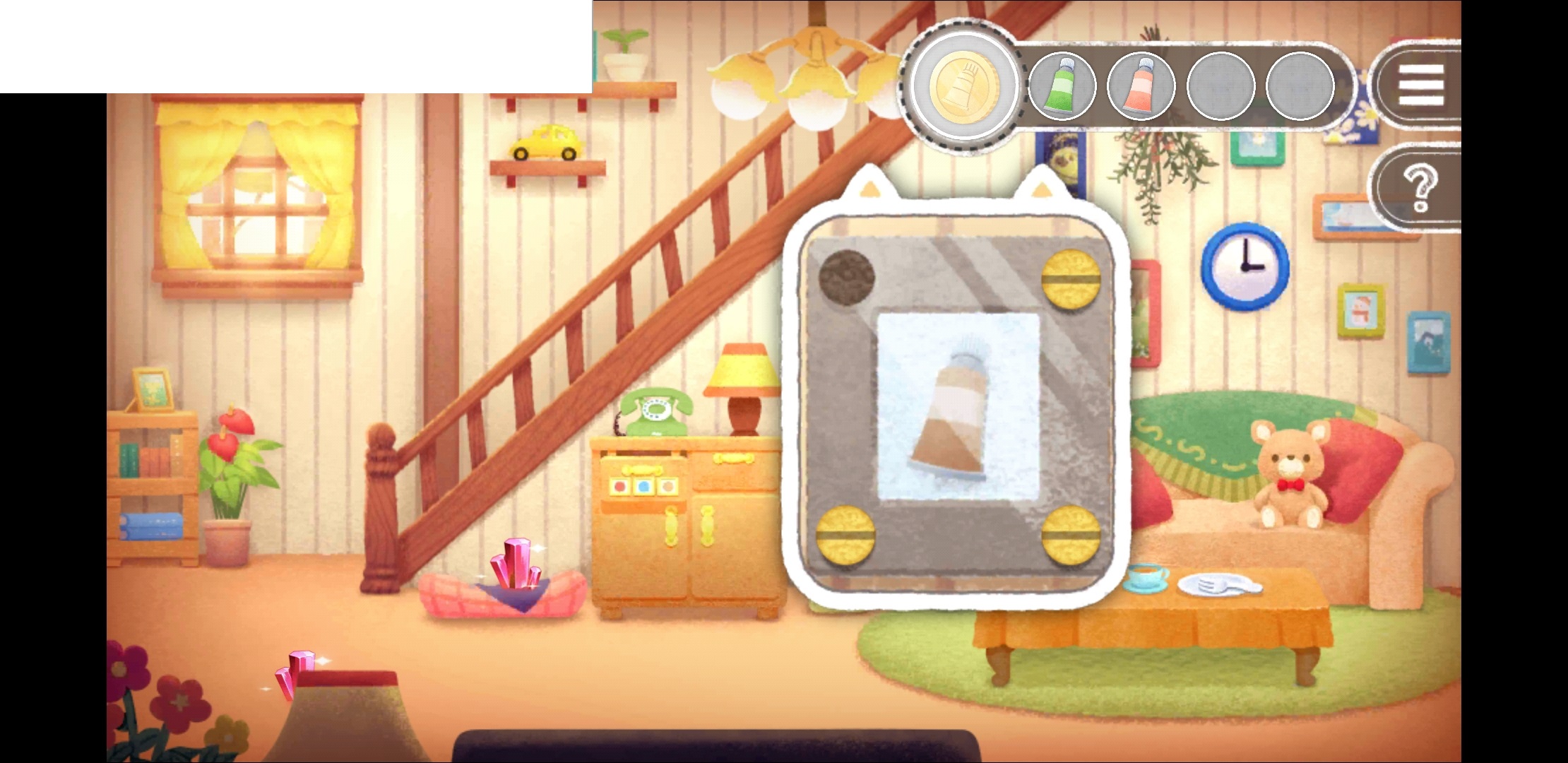 2층에 펭귄인형(왼쪽), 1층에 곰인형(정면), 식당에 토끼인형(왼쪽)을 찾아서 바라보는 방향을 외워요 그리고 1층 서랍에 동물 바라보는 방향을 입력하면 녹색 물감을 Get!!!