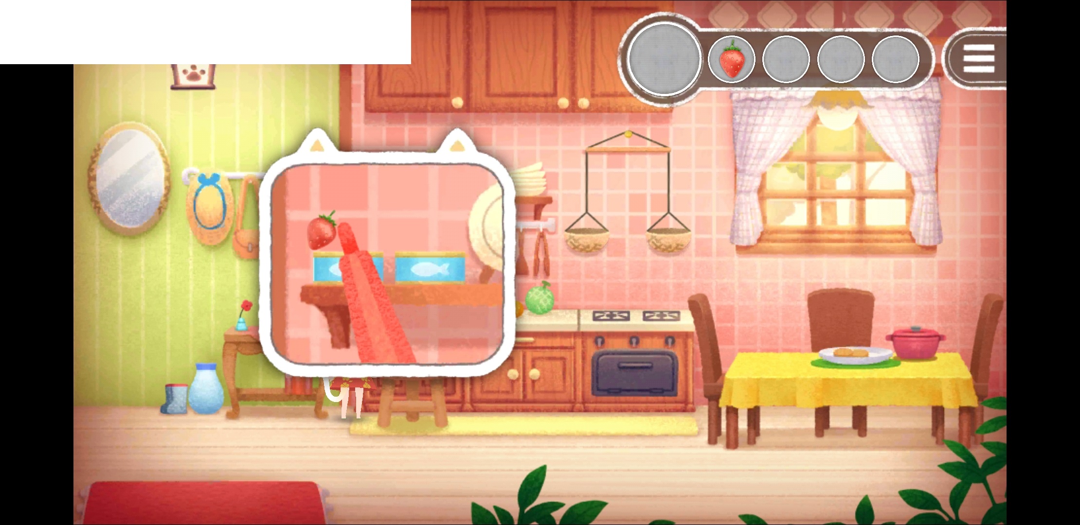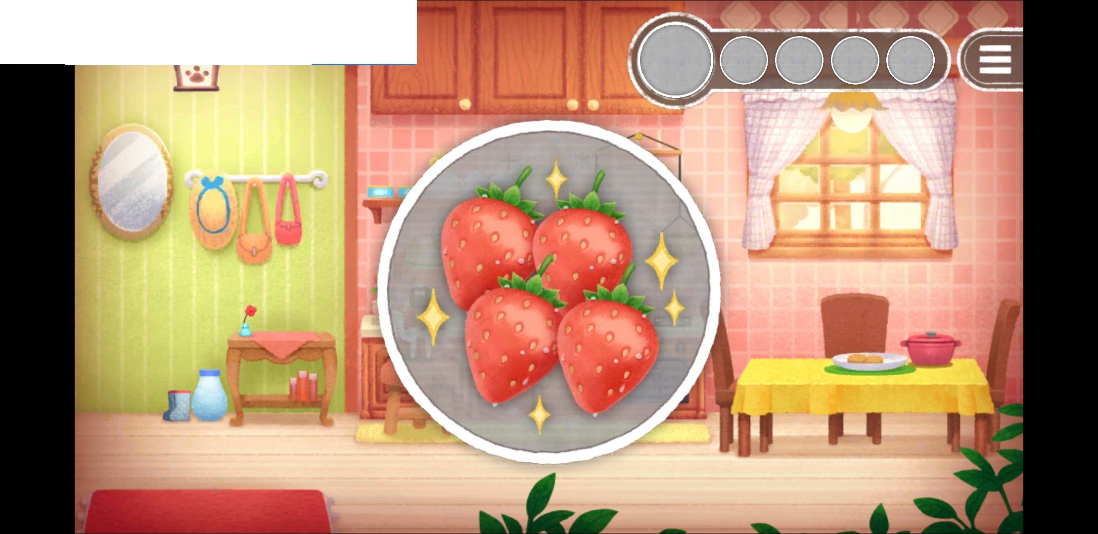딸기를 씻어서 식탁에 가져다 놓으면 딸기가 케이크로 바뀌구요 그러면 케이크를 주인공이 맛있게 먹으며 CLEAR~~~