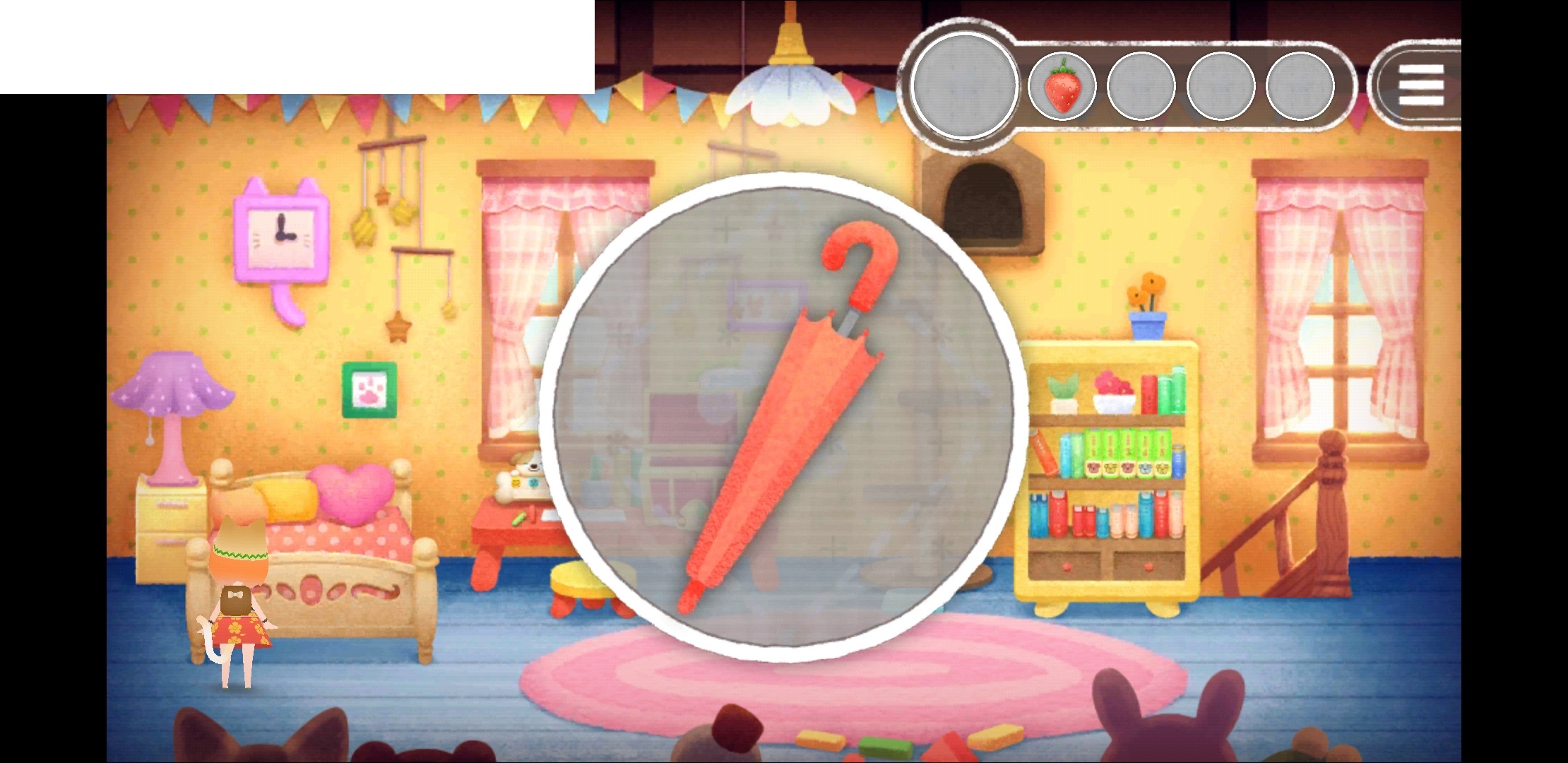 딸기를 모아오는 스테이지로 두번째에 우산을 얻어야 얻는 부분에서 우산을 찾아야 하구요.(메인스테이지에서는 우산꽃이에 꽃아있었어요)