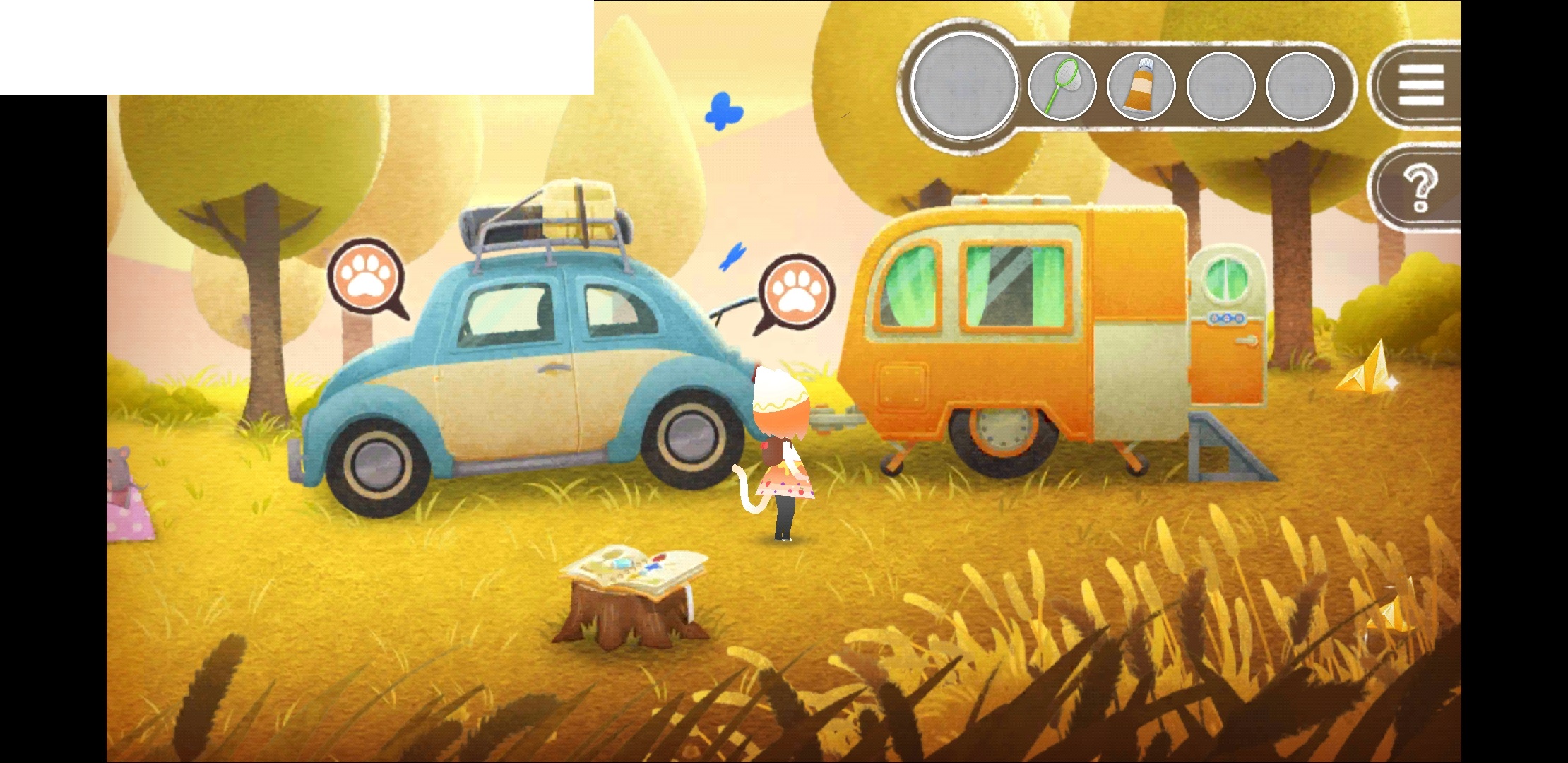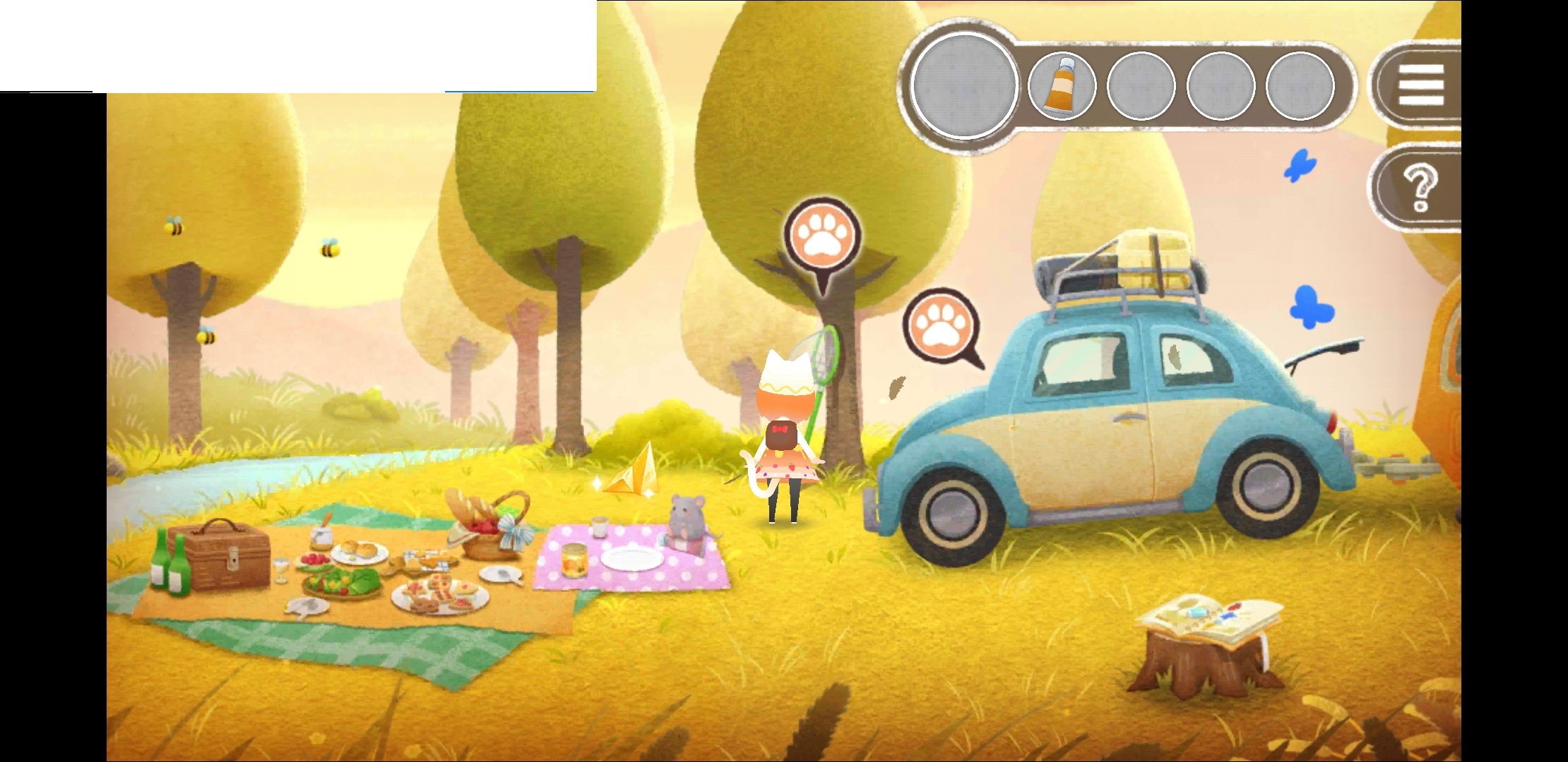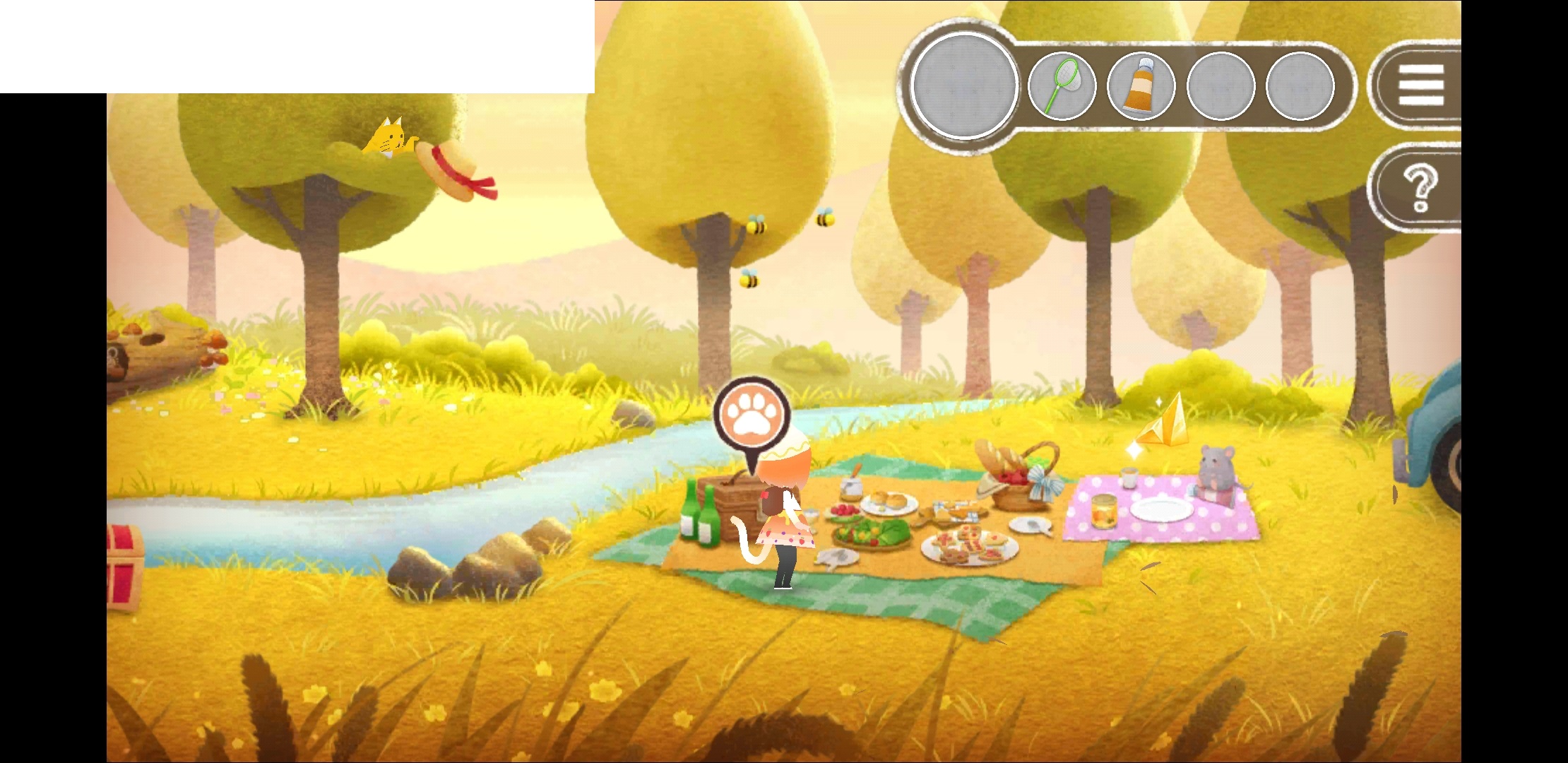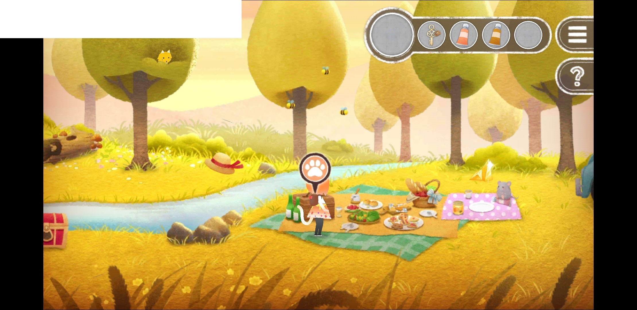 마지막 미션으로 나무위 고양이를 구출하면 되는데요. 첫번째로 곤충 채집채로 모자를 떨궈요. 그리고 버들가지를 구해서 흔들흔들 해주면 고양이가 내려와요.