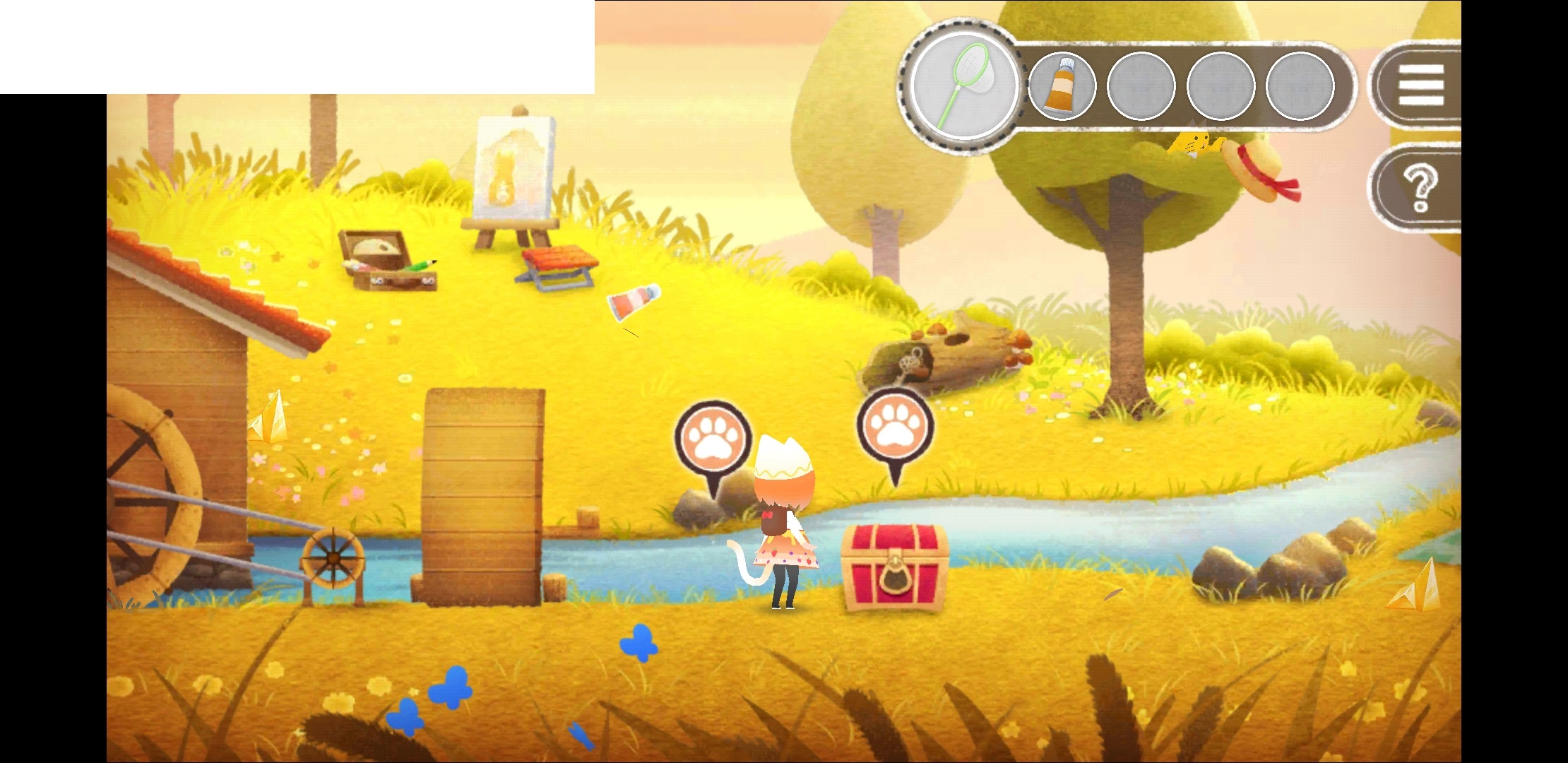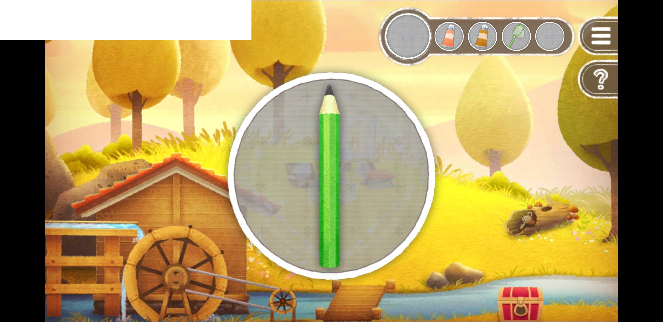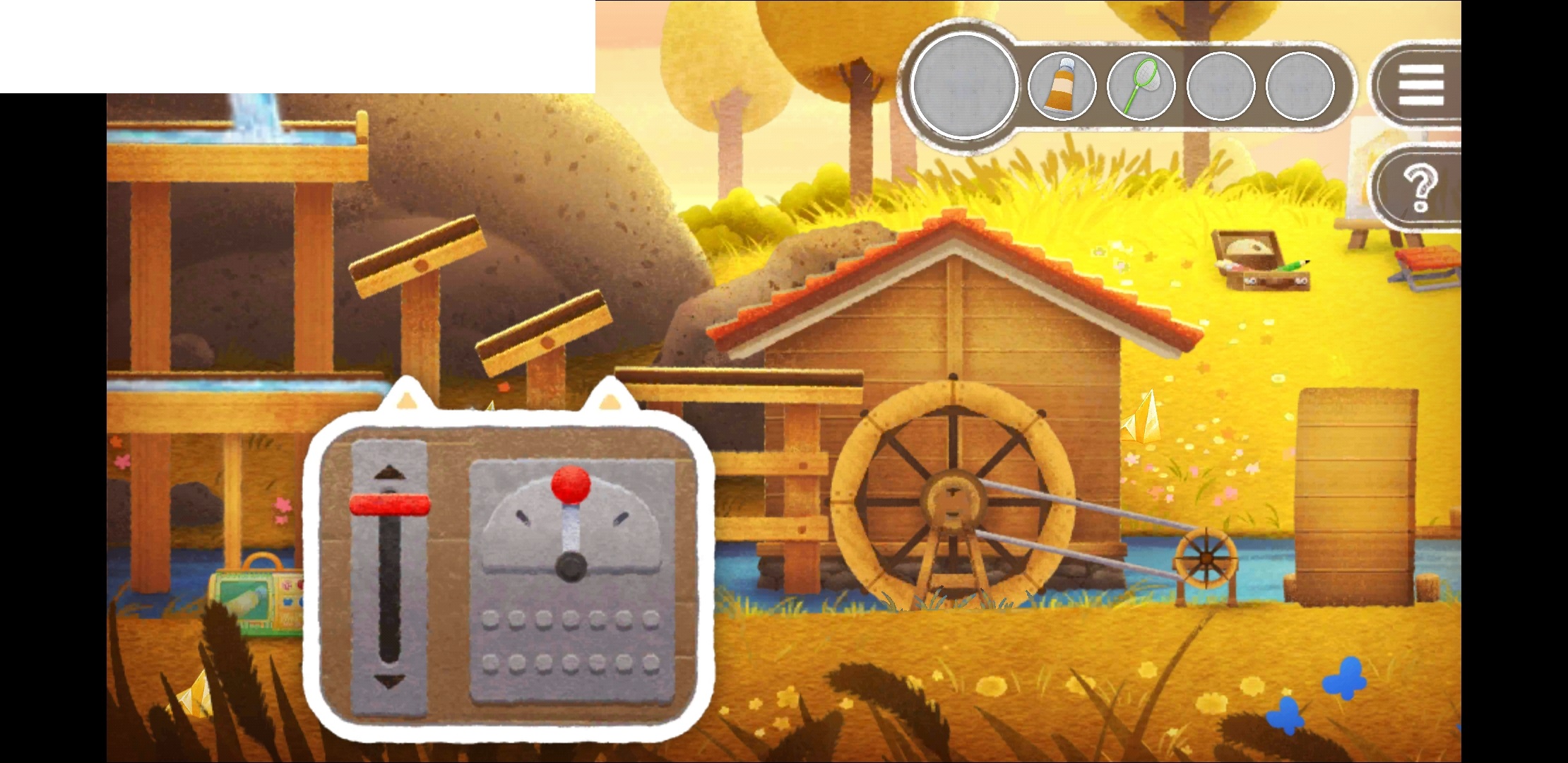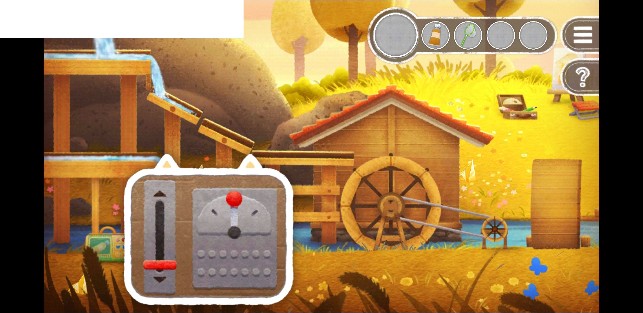 두번째 물감은 물레방아의 물을 아래까지 내리면 되는데요. 채집채를 획득하고 그거로 시냇물에 반짝이는 물건을 획득하면 손잡이를 얻을수 있구요 그거로 물레방아를 컨트롤해서 왼쪽 손잡이를 위로 올리면 왼쪽 물이동을 아래로 내리면 오를쪽 물이동을 할 수 있어요. 이동이 완료되면 물레방아 오른쪽에 다리가 내려오고 건너가면 두번째 물감을 GET!!!