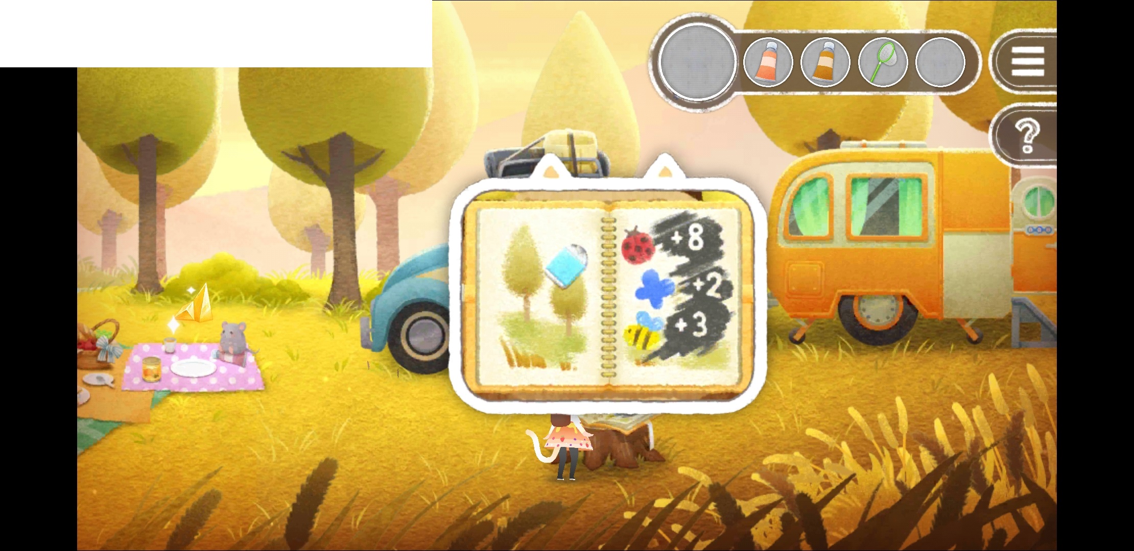 그리고 연필을 찾아서 공책에 쓱쓱 그리면 숫자들이 나타나는데 이걸 화면에 보여졌던 곤충들의 합이 보관함 열쇠의 비밀번호로 합하면 무당벌레 9, 나비 8, 벌 6이되요. 그럼 그걸 입력하면 상자가 열리면서 물감을 GET!!!