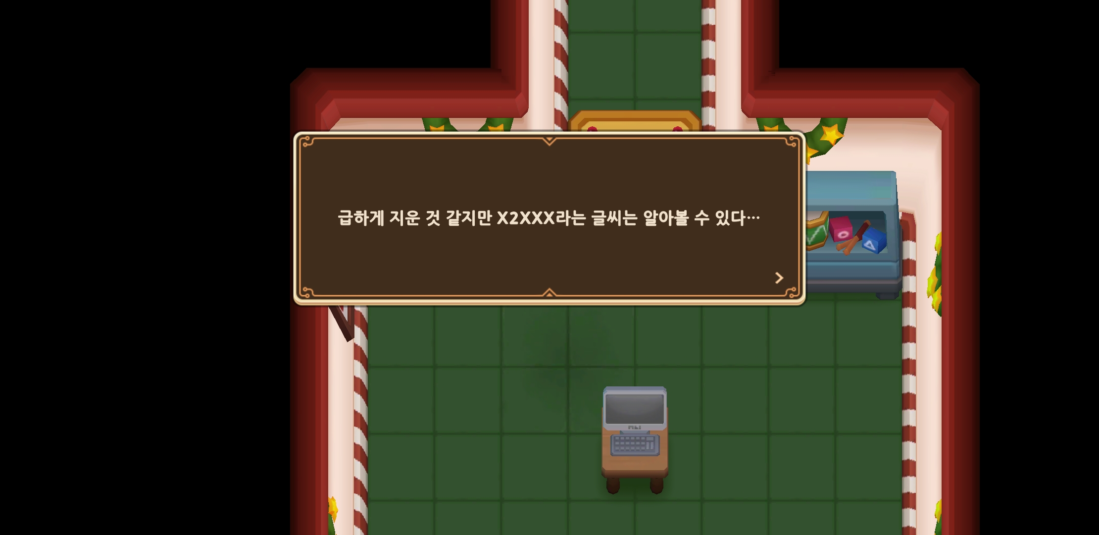 첫번째 스테이지 산타방 비밀방의 커퓨터 암호는요