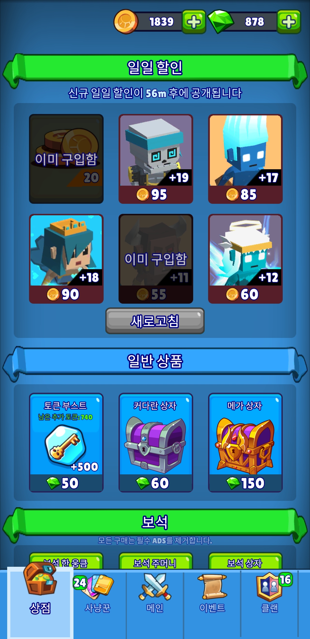 게임을 진행하면서 골드를 모아 캐릭터를 구매할 수도 있고 이벤트 및 상자를 열어 보석을 얻어 골드로 교환 및 캐릭터도 구매할 수 있습니다. 그렇다고 현질 유도가 심하지 않으니 현질을 하지 않아도 불이익이 별로 없습니다.