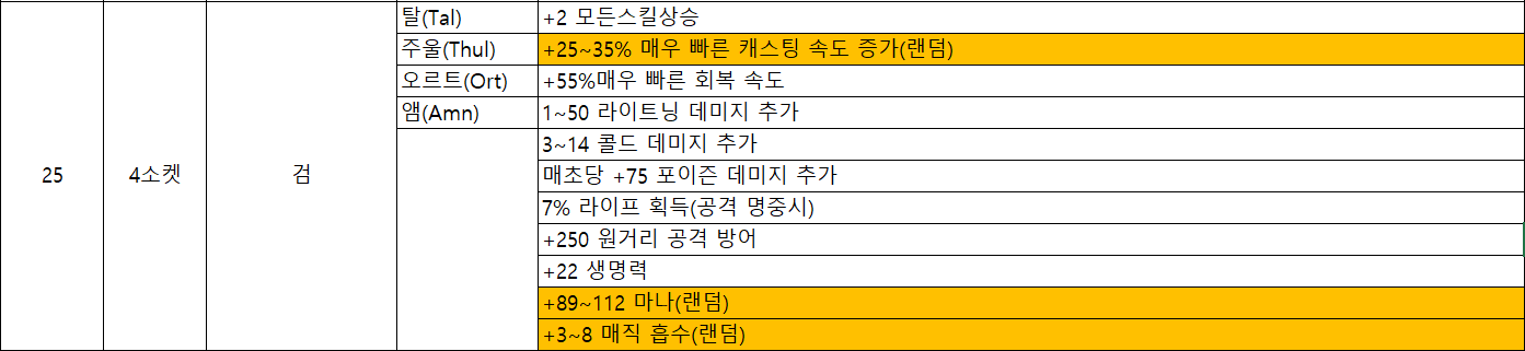 위와 같이 검에 대한 룬워드가 존재하며 디아블로2 레져렉션 룬워드 검편으로 디아블로2 레져렉션을 진행하시면 참고하시기 바랍니다.