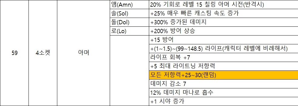위와 같이 아머에 대한 룬워드가 존재하며, 디아블로2 레져렉션을 진행하시면서 참고하시기 바랍니다.