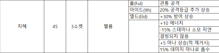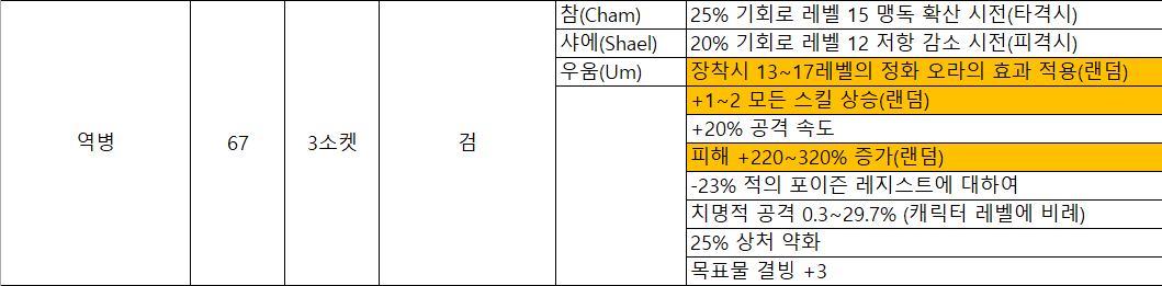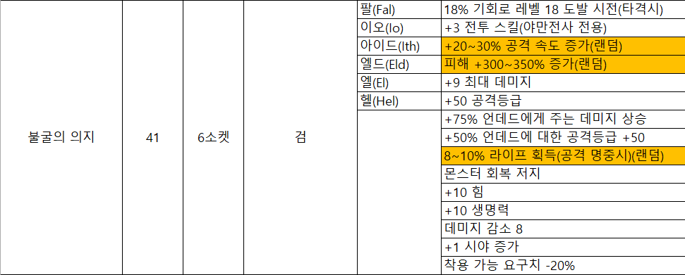 순서는 레벨, 소켓수, 재료, 룬워드, 옵션 순입니다.